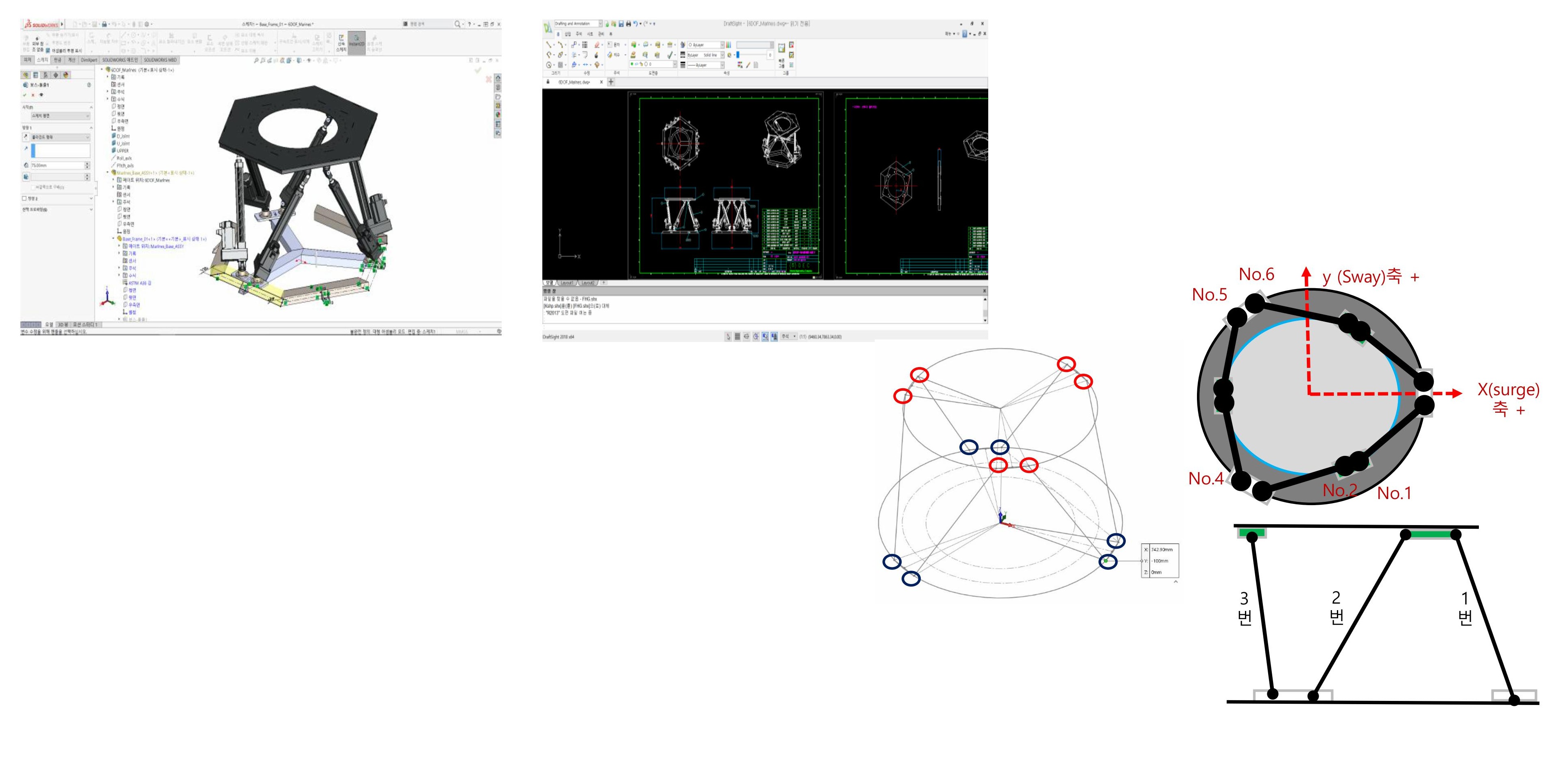 - 3D CAD에서 점과 선으로 연결하여 모션플랫폼 형상을 설계하여 하부베이스의 조인트